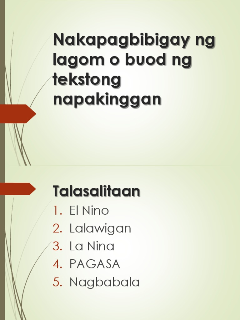 Nakapagbibigay Ng Lagom O Buod Ng Tekstong Napakinggan Pdf