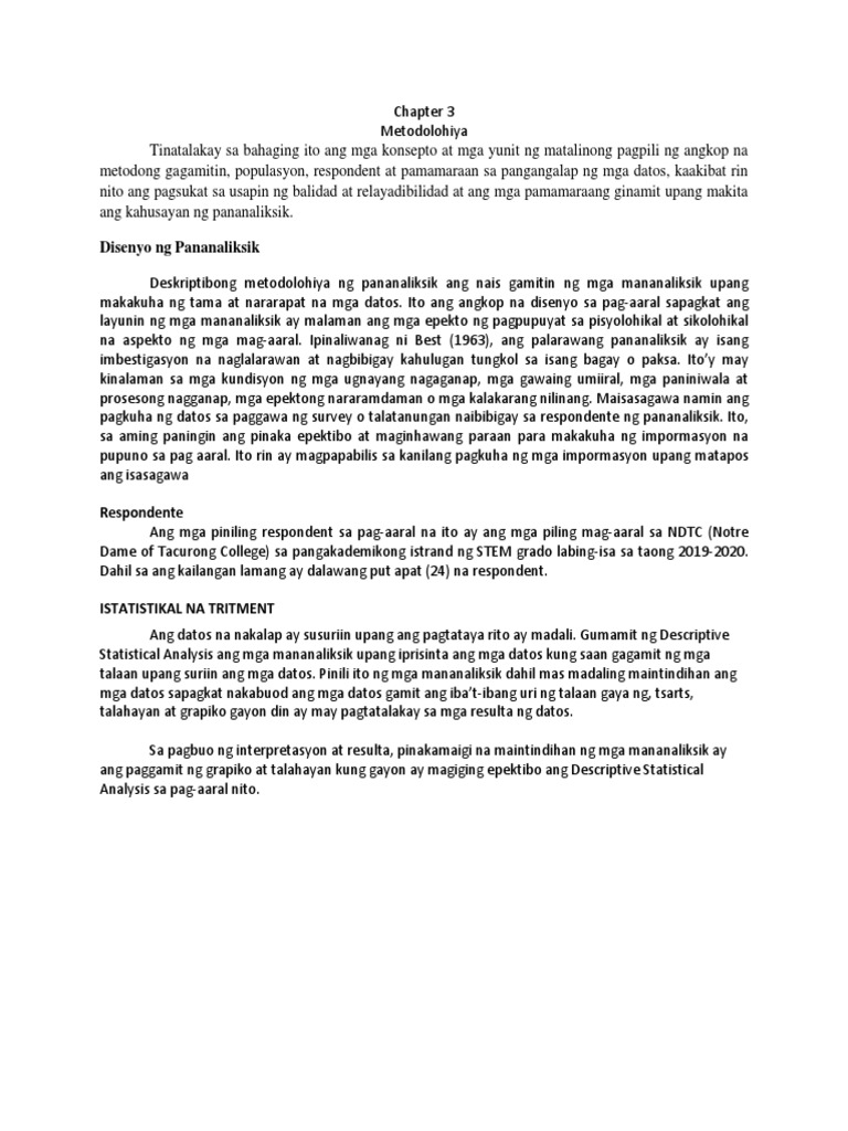 Modyul sa Senior High School Filipino Pagbasa at Pagsusuri ng Ibat Ibang Teksto Tungo sa Pananaliksik. And Sciences si Dr. Respondents at sampling method Ang mga respondents ng pag- aaral na ito ay ang mga mag- aaral na nasa ikatlong taon 3rd year mula sa ibat ibang schools ng unibersidad.