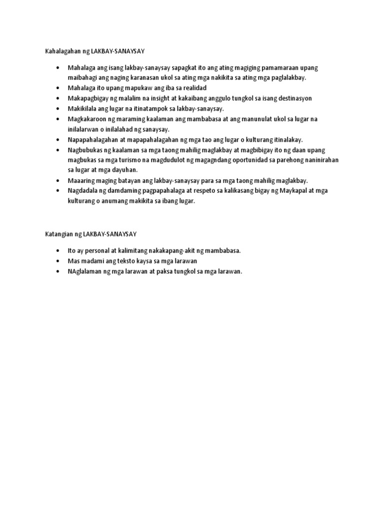 Kahalagahan At Katangian Ng Lakbay Sanaysay Pdf