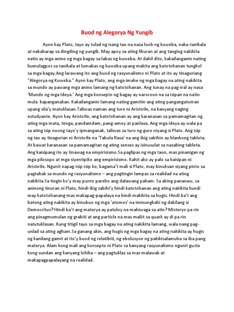 Buod Ng Alegorya Ng Yungib Pdf