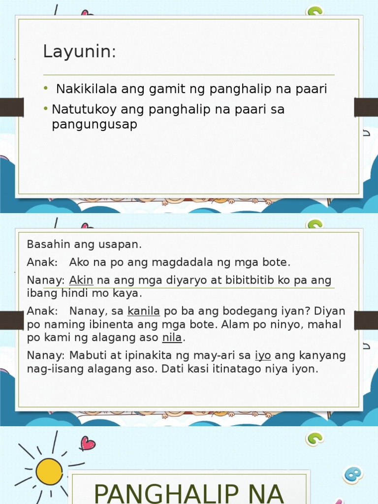 28102019 Halimbawa ng isang talata na ginagamitanng paksa layon at panghalip na paari. Displaying all worksheets related to - Panghalip Na Paari Grade 5. Gamit ng pang uri sa pangungusap.