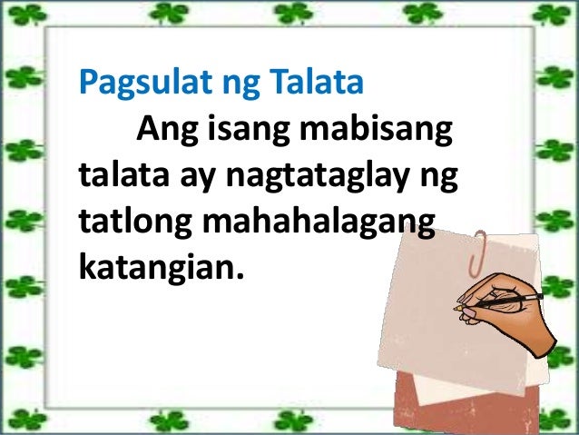 Talata Example Sentence in Tagalog. In English the Tagalog word talata translates as paragraph. Bea via seak namanhik archetypal meaning ng op kahulugan ng kj.