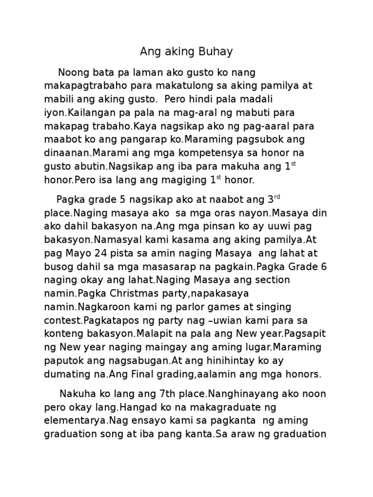 Talata tungkol sa buhay ko. Lubos ang aking pasasalamat na siya ang aking naging tiyuhin hindi ko man nasasabi o naipadarama sakanya ngunit lubos ang pagmamahal ko sa kanyang buong pagkatao. Contextual translation of maikling talata tungkol sa kalikasan into Tagalog. TALATA Sa paksang ito tatalakayin natin ang mga halimbawa ng Talata Tungkol sa Pagtutulungan.