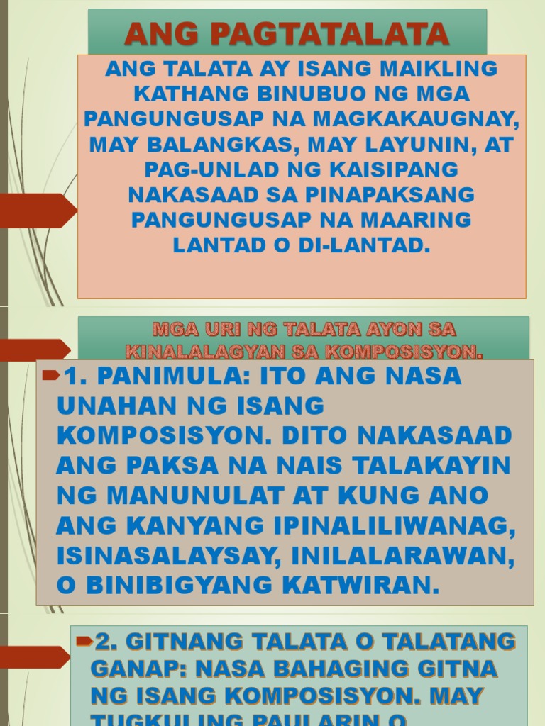 Ano ang ibig sabihin ng bawat talata ng Bibliya. Sa mga banal na libro tulad ng Bibliya o ng Koran ito ang paghahati sa mga parirala o segment ng mga parirala na isinasagawa sa loob ng. Anu ano ang tatlong uri ng talata.