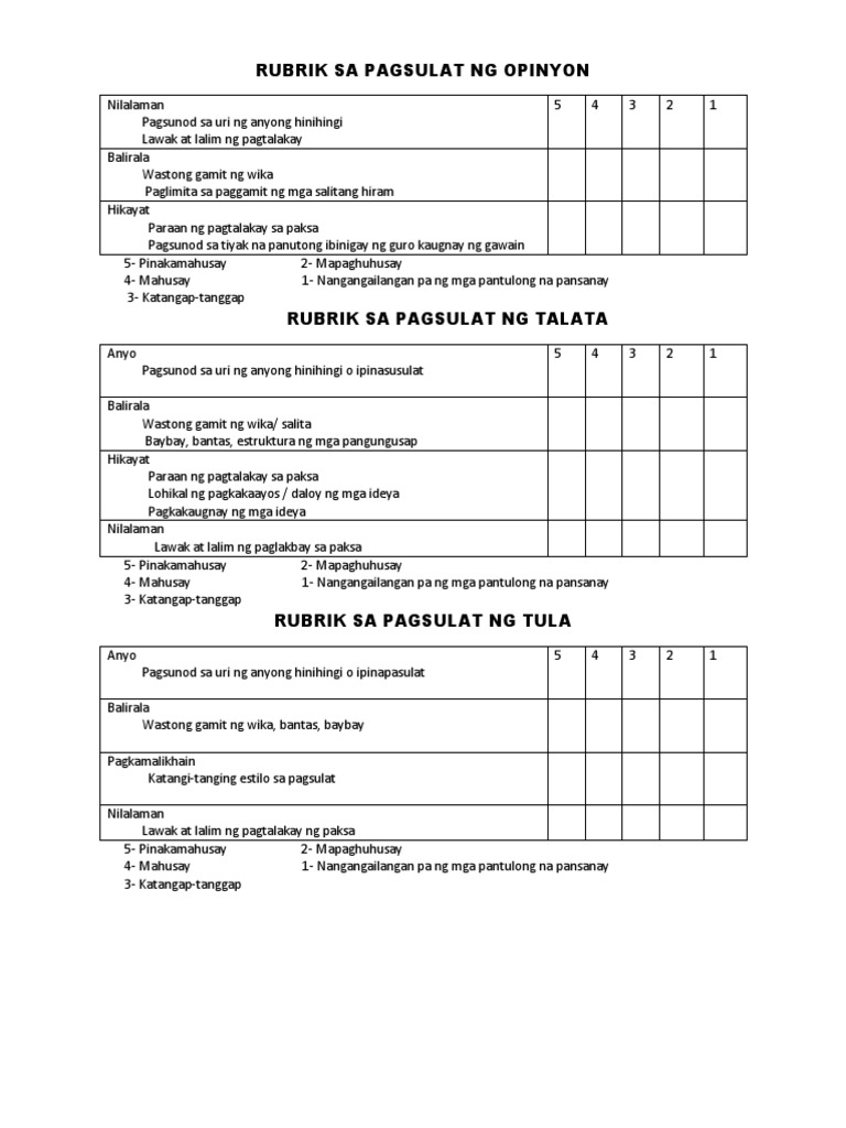 Rubriks Sa Pagsulat Ng Talata Grade 3